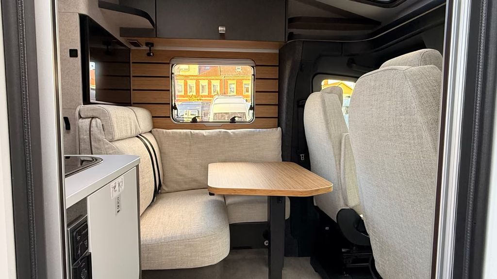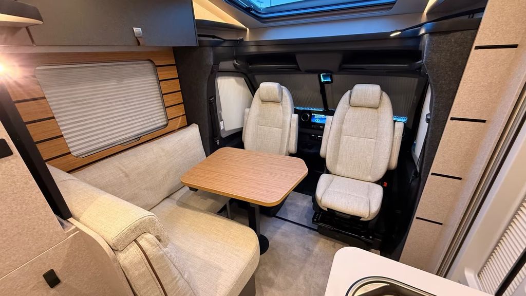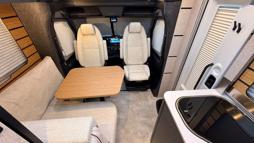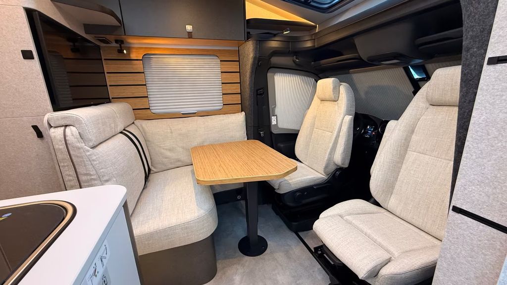 Bettenbau für Komfort L-Sitzgruppe inkl. Zusatzpolster und absenkbarem Tisch unter Einbeziehung des Fahrersitzes