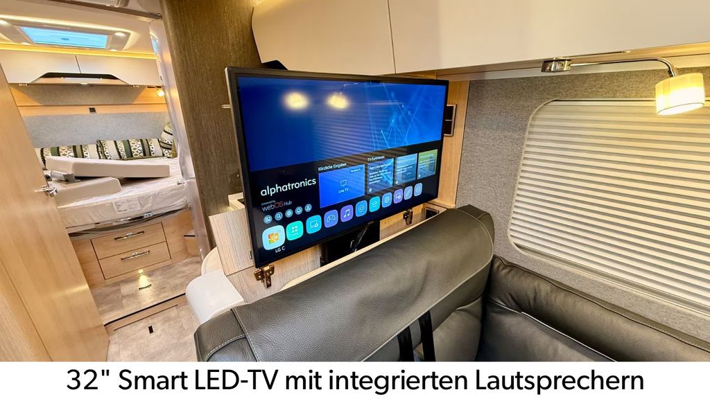 32" Smart LED-TV mit integrierten Lautsprechern, Fernbedienung, HYMER Smart-Multimedia-System mit Bluetooth (DVB-T/C, DVB-S2) und elektrischem Halter inkl. Receiver
