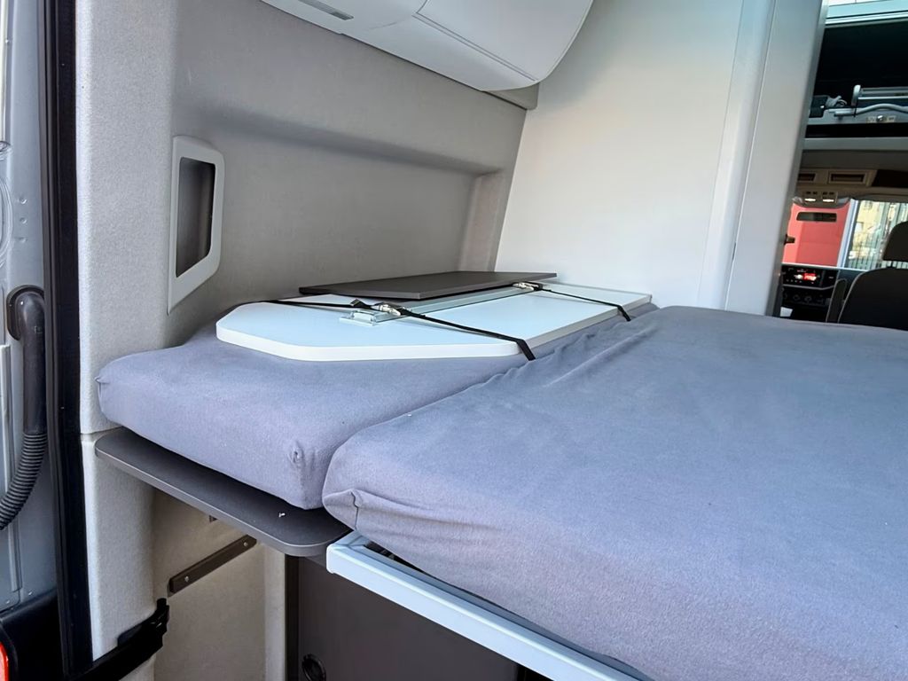 Doppelbett im Fahrzeugheck, in Querrichtung